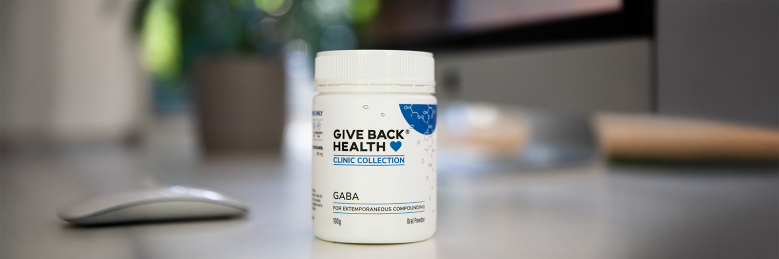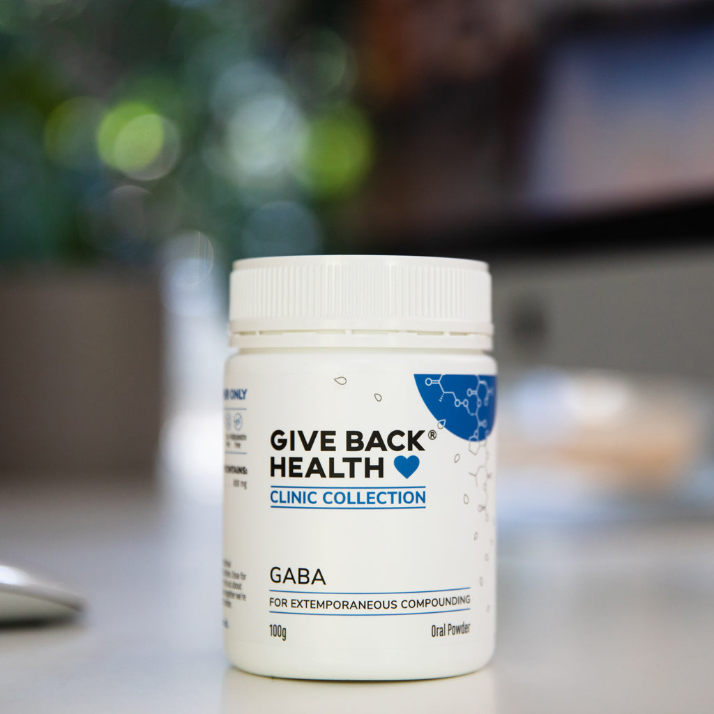 GABA may be relevant in supporting CNS regulation, but prescribing should be made in the context of a full clinical history. to: Absolutely. This can be mixed with any other powder product in the Give Back Health Clinic Collection. Reach out if you need assistance or guidance with compounding personalised medicines for your patients. Alternatively, see our compounding resources, including a compounding calculator, videos and sample recipes based on real-life cases.