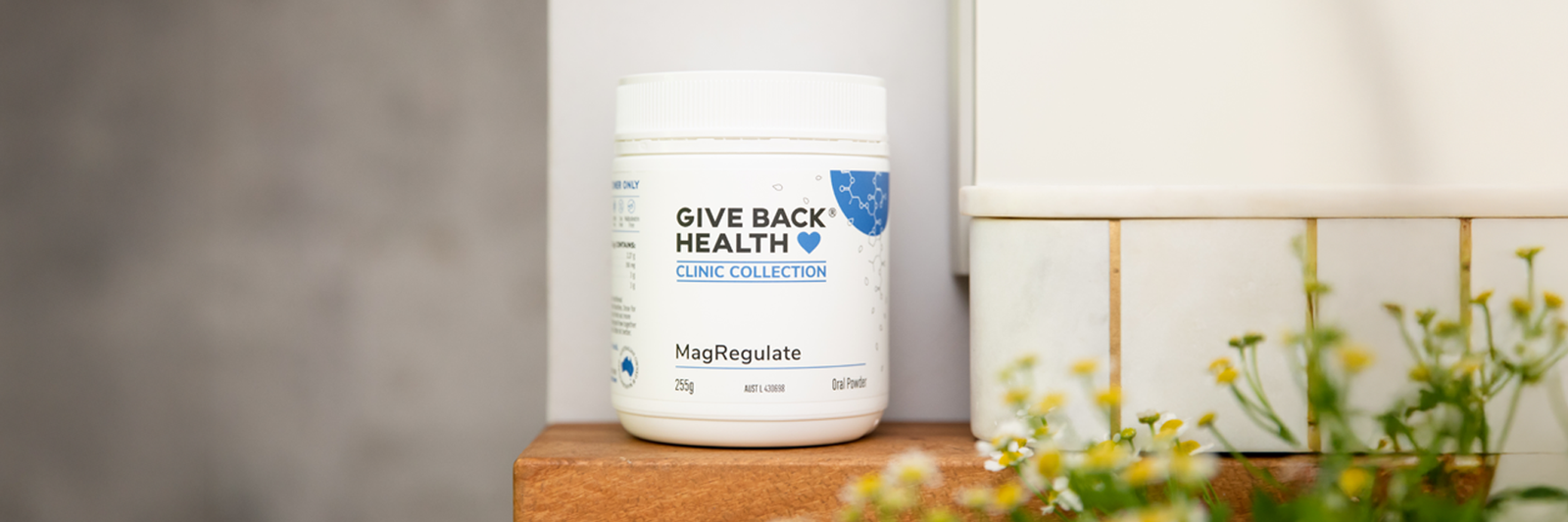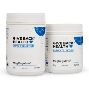 Give Back Health Clinic Collection MagRegulate® combines a highly bioavailable form of magnesium with clinically trialled dosages of taurine and L-glycine. It modulates mood, supports nervous system response and optimises metabolic, mitochondrial and cardiovascular health.It is a listed medicine (AUST L 430698) on the Australian Register of Therapeutic Goods (ARTG) and comes in powder form.