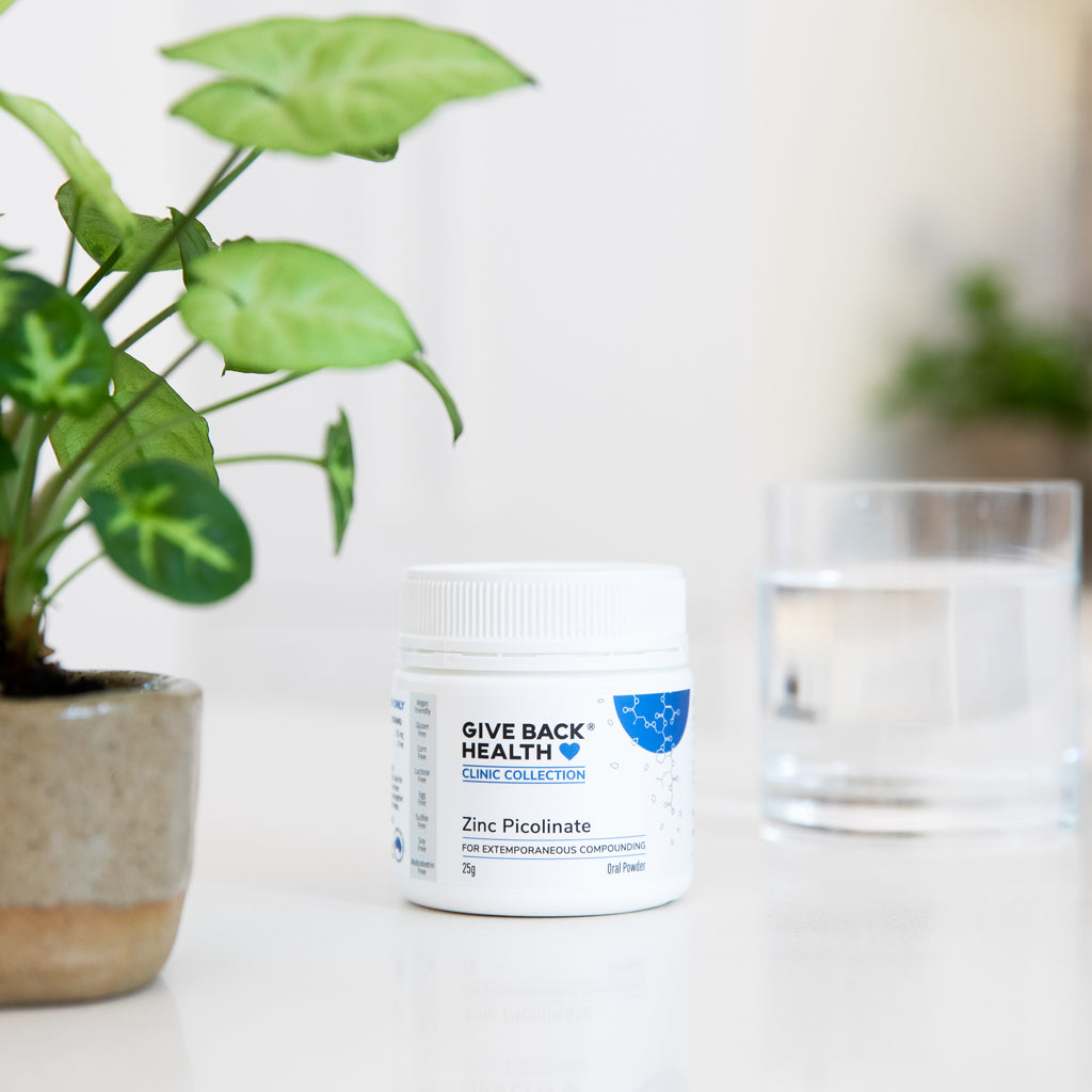 Give Back Health Clinic Collection Zinc Picolinate is manufactured and tested in TGA-registered GMP facilities here in Australia, ensuring high standards of quality, safety and efficacy. Every product, every batch, with no exceptions. This means the included ingredients are what they claim to be and the products are therefore more likely to have an actual therapeutic impact. This process also prevents counterfeit and adulterated materials from entering the market. While it adds significantly to our costs, we believe this level of integrity should be the industry standard. Please note that we absorb the extra expense ourselves; it is not passed on to you.